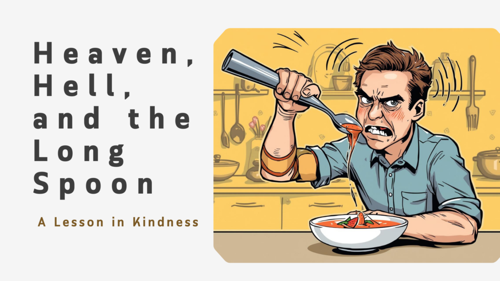 Each person held a spoon, but the spoons were very long. So long that when they tried to feed themselves, the food could not reach their own mouths. They strained. They tried harder. Some grew angry. Others gave up.